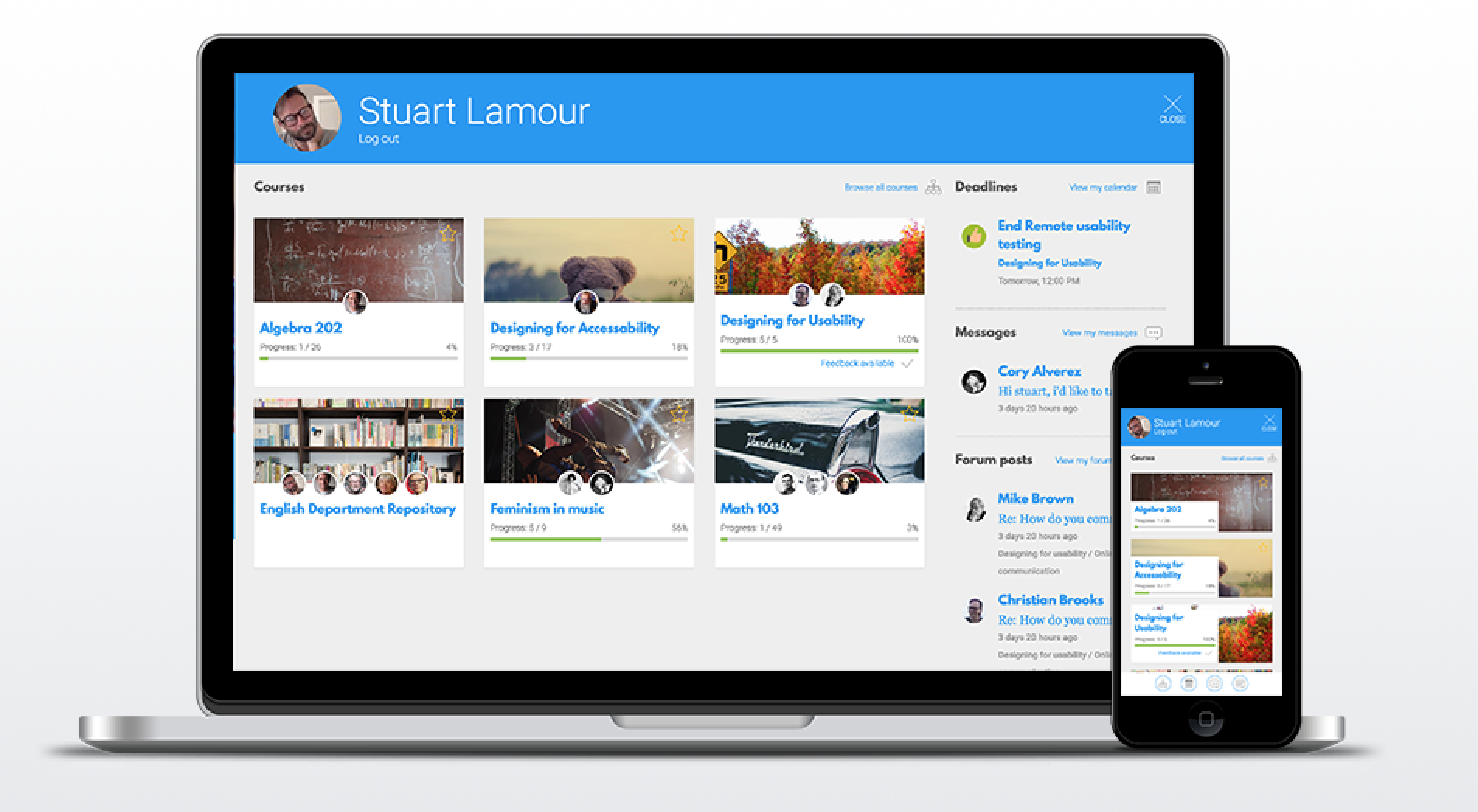 Depois de se  inscrever em alguns cursos, você os encontrará em um clique em qualquer página, usando o botão Menu.